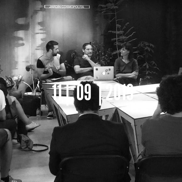 El sábado 9 de octubre en los jardines de la exposición tuvo lugar el encuentro Paisajes circulares. Un diálogo promovido por el ICAS y la UNIA y en el que participaron Mónica Gutiérrez (Basurama), Estelle Jullian, Lilian Weikert (La Plasita), Fran Díaz (Autofabricantes), Alice Attout (Recetas ur